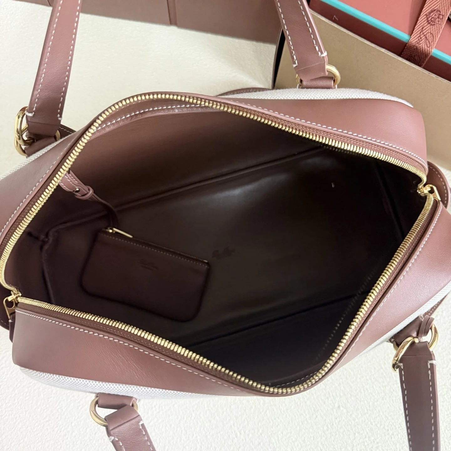 Internal leather pouch with lobster clasp